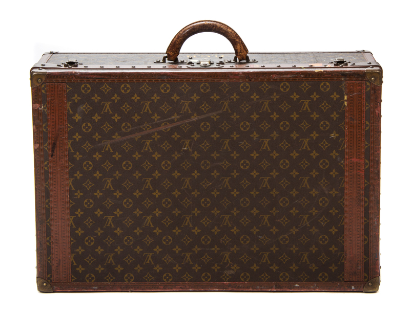 leather trim, interior tray with linen straps, brass fittings and hardware with stenciled monogram RGH below the handle. Stamped: Louis Vuitton.