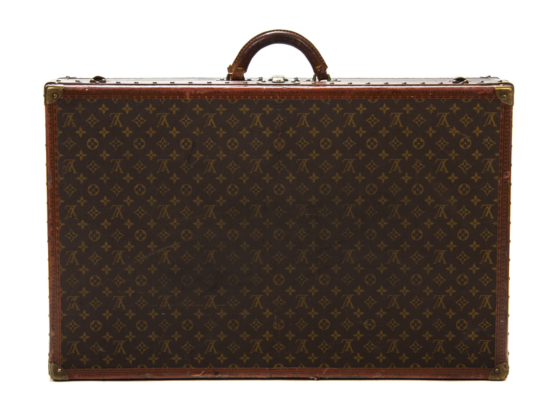 leather trim, interior tray with linen straps, brass fittings and hardware. Stamped: Louis Vuitton.