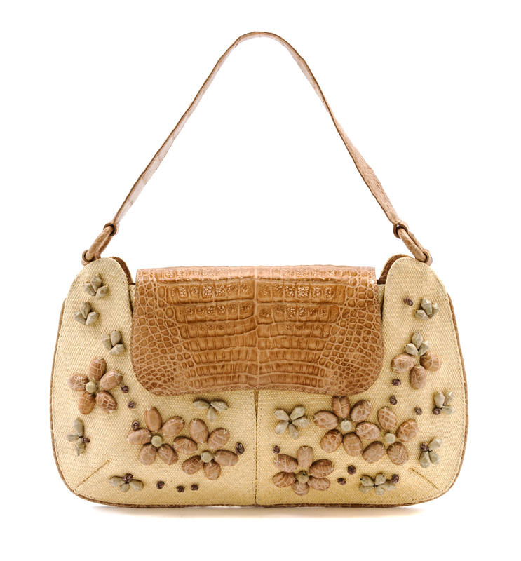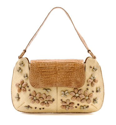A Nancy Gonzalez Tan Crocodile and Wicker Bag,
