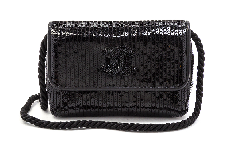 A Chanel Black Leather and Sequin Flap Bag,