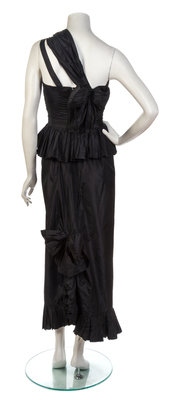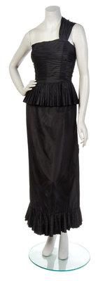 A Chanel Black Taffeta Single Shoulder Gown,