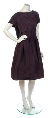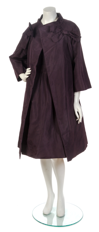 A Christian Dior Plum Peau De Soie Cocktail Dress Ensemble,