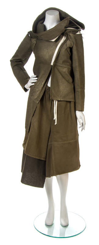 Fall/Winter 2003,Looks #14 & 37,comprised of an asymmetric zip down jacket with an oversized collar and an asymmetric hem, together with a pair of drawstring waist wide leg culottes. Each labeled: Comme des Garcons.