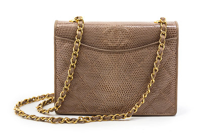 A Chanel Taupe Quilted Lizardskin Flap Bag,