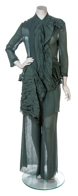 A Yohji Yamamoto Green Sheer Chiffon Runway Pant Ensemble,