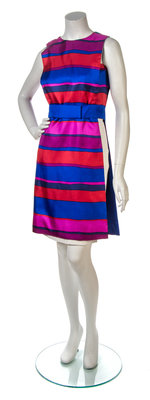 A B. H. Wraggage Blue, Pink and Orange Stripe Satin Tabard Ensemble,
