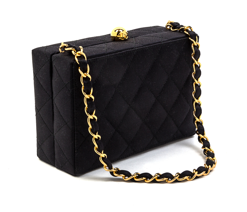 A Chanel Black Satin Quilted Box Bag,