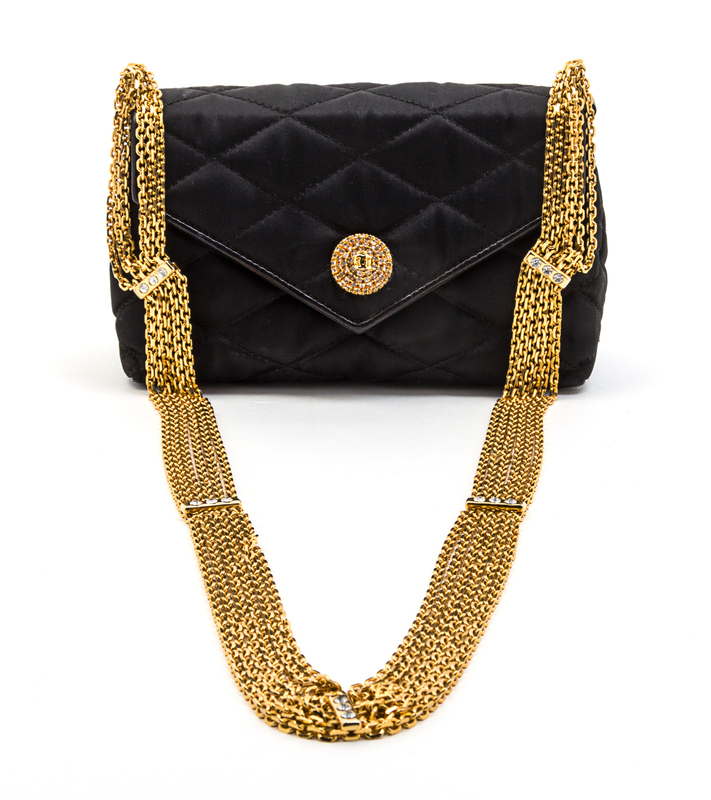 A Chanel Black Satin Quilted Convertible Evening Bag,