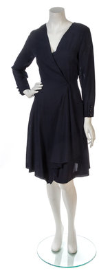 A Chanel Navy Wool Crepe Wrap Dress,