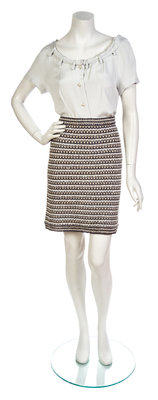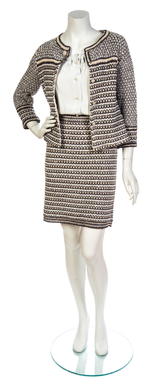 A Chanel Metallic Grey, Taupe and Ivory Beaded Cotton Knit Skirt Suit,