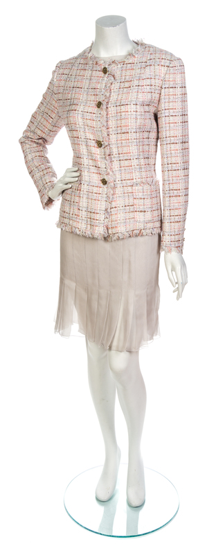 A Chanel Pink, Taupe and Silver Silk Tweed Skirt Ensemble,