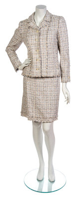 A Chanel Taupe, Pink and Grey Cotton Tweed Skirt Suit,