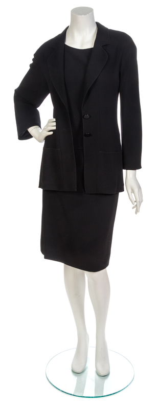 A Chanel Four Piece Black Wool Twill Ensemble,