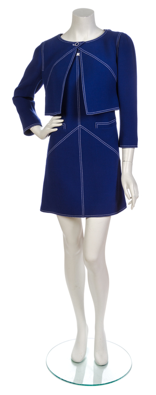 A Courreges Blue Wool Dress Ensemble,