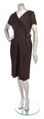 short sleeves, with a surplice neckline and decorative bow to the right hip. Labeled: Dominique Verdet.