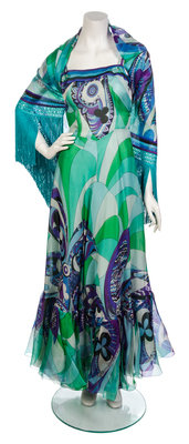 An Emilio Pucci Multicolor Chiffon Print Gown and Shawl,