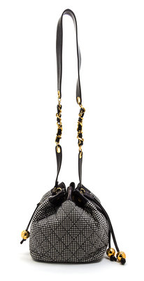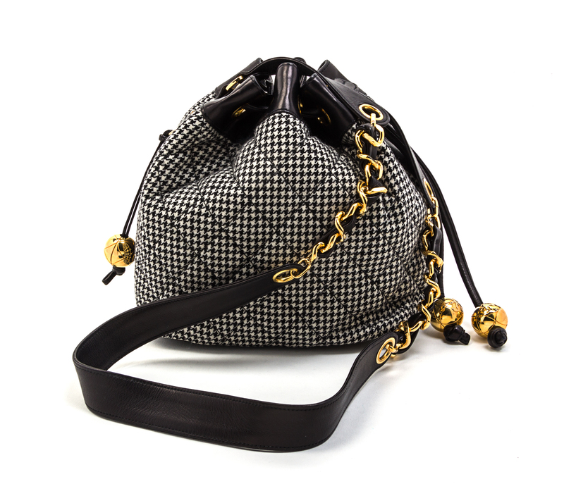A Chanel Black and White Houndstooth Wool and Black Leather Trim Bucket Bag,