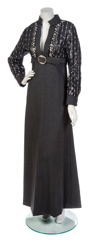 A Galanos Grey Wool Rhinestone Embroidered Gown,