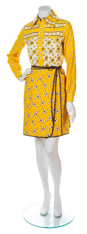 1970s,comprised of a button down shirt, together with a reversible wrap around skirt. Labeled: Beene Bazaar.