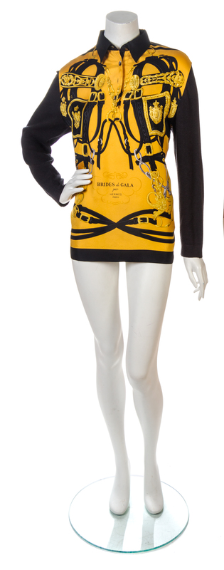 full length sleeves, henley neck, in a 'Brides de Gala' motif. Labeled: Hermes.