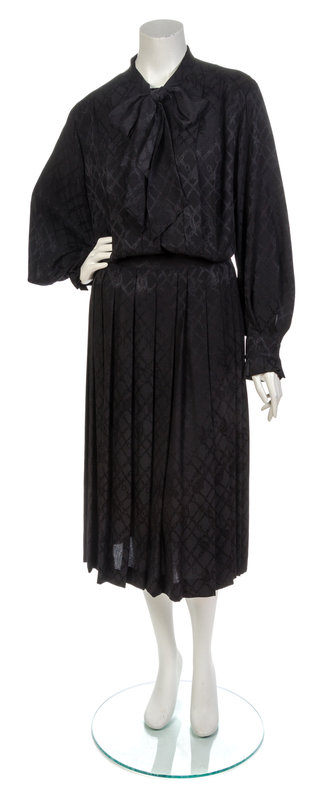 An Hermes Black Silk Jacquard Skirt Ensemble,