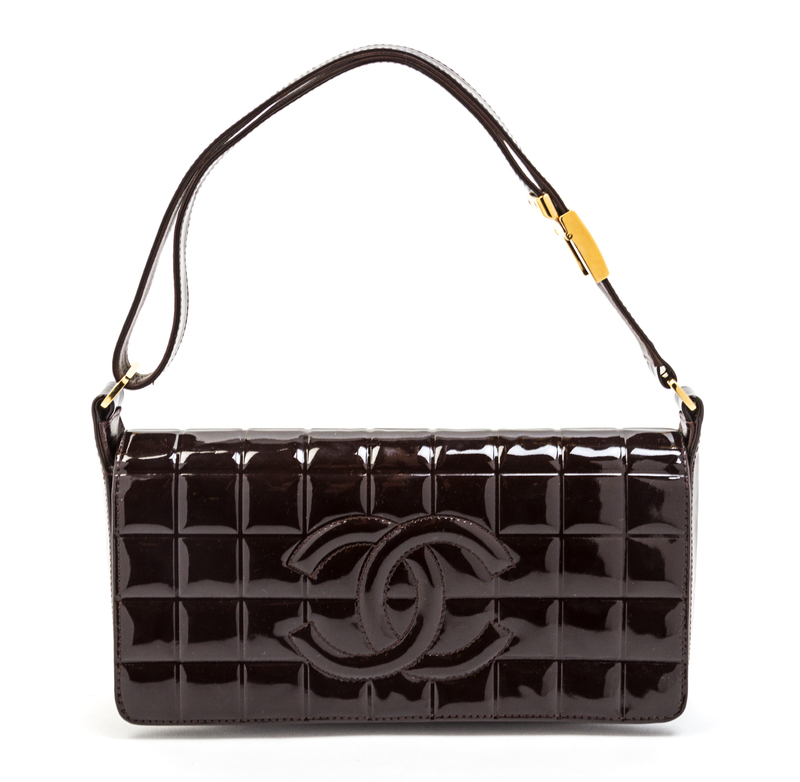 A Chanel Brown Quilted Patent Leather Bag.