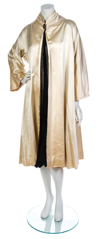 A Jacques Fath Oyster Silk Satin Opera Coat,