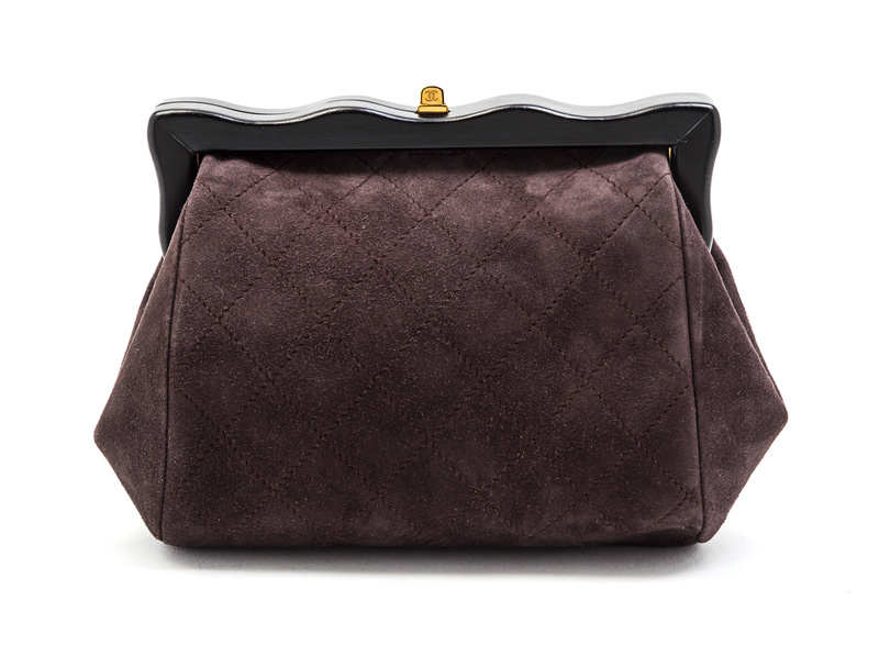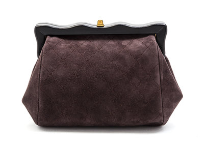 A Chanel Gray Quilted Suede Oversized Clutch,