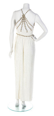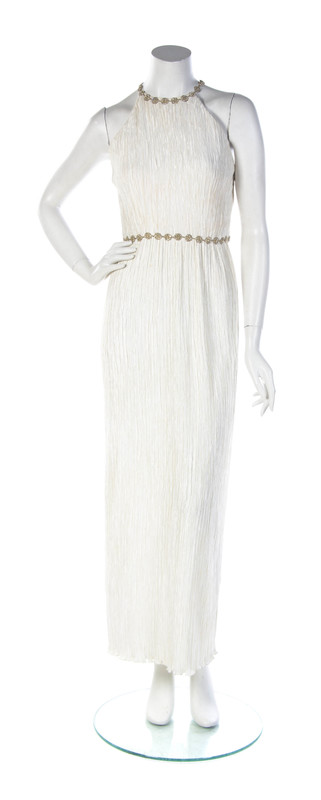 A Mary McFadden Couture Ivory Pleated Halter Gown,