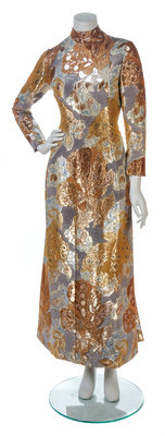 A Pauline Trigere Gold and Silver Jacquard Gown,
