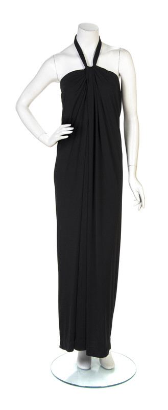 A Victor Costa Black Halter Draped Gown.