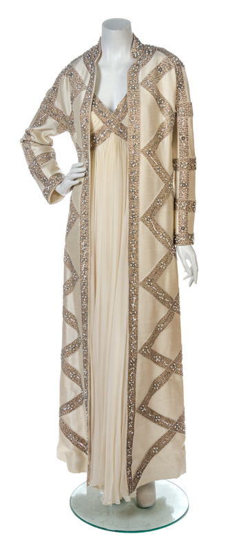 together with a matching evening coat. Labeled: Victoria Royale Ltd.