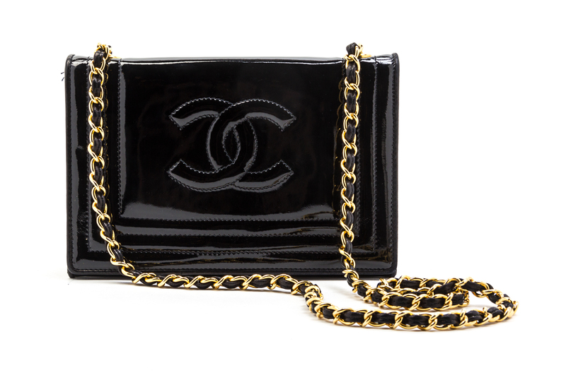 circa 1987,with a quilted interlocking 'C' logo, goldtone hardware, interwoven leather and chain link shoulder strap, interior zippered pocket. Stamped: Chanel.
