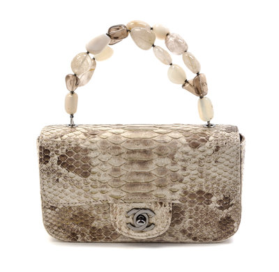 circa 2003,with two multicolor rock crystal handles, a gunmetal interlocking 'C' logo, interior slip pocket and taupe leather lining. Stamped: Chanel.