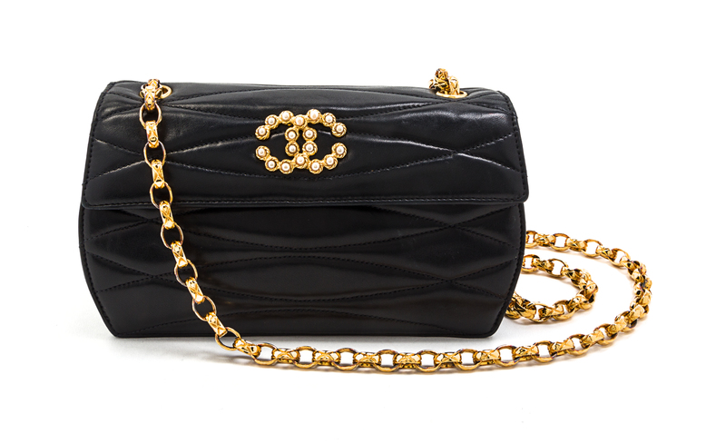 A Chanel Black Quilted Leather and Faux Pearl Flap Bag,
