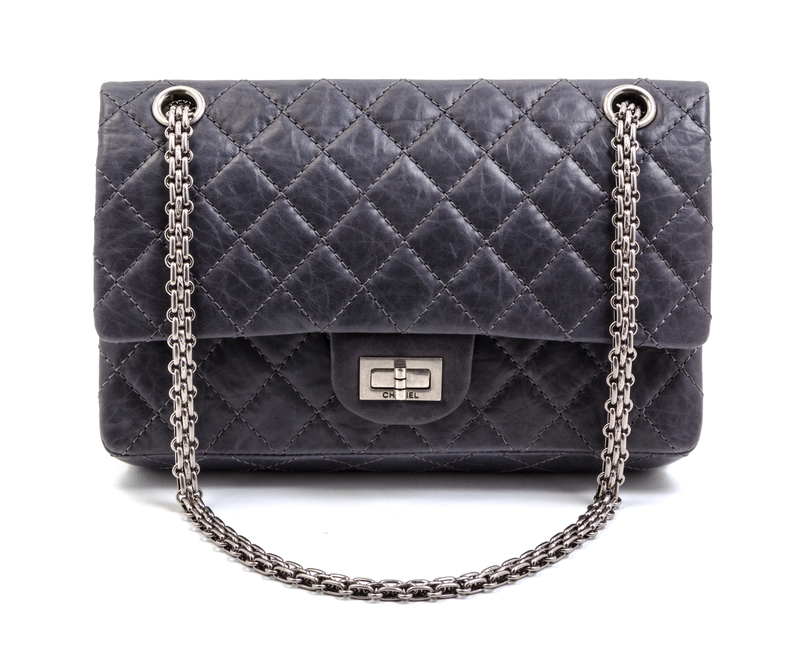 A Chanel Grey Quilted Leather Double Flap Bag,