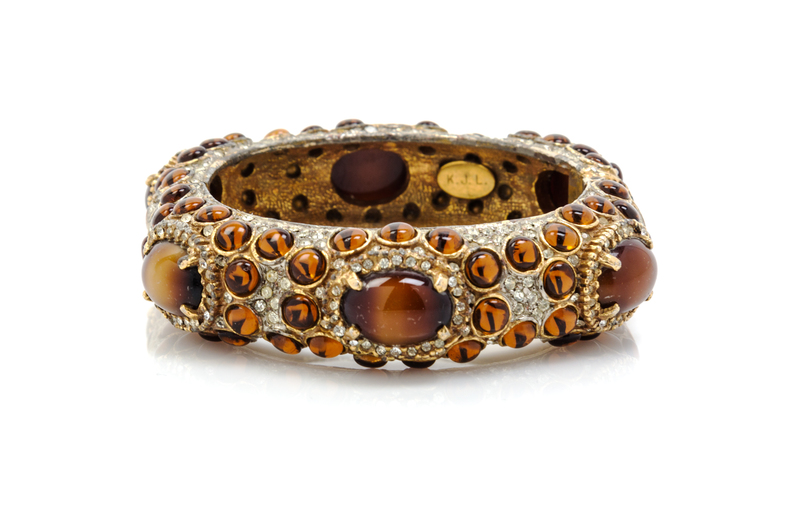 A Kenneth Jay Lane Faux Amber Cabochon Hinged Bracelet,