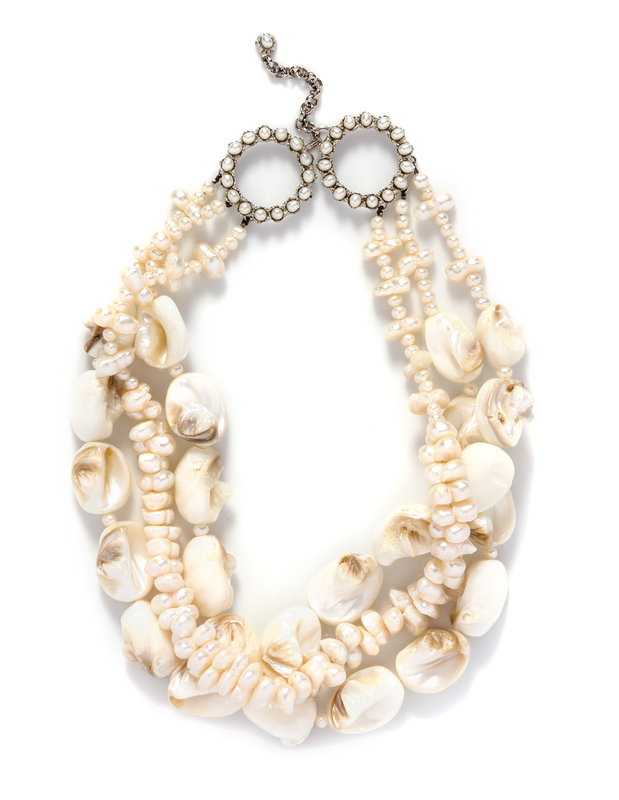 multistrand, with pearlesque sea shells of varying sizes, and a hook and eye clasp. Stamped: Siman Tu.
