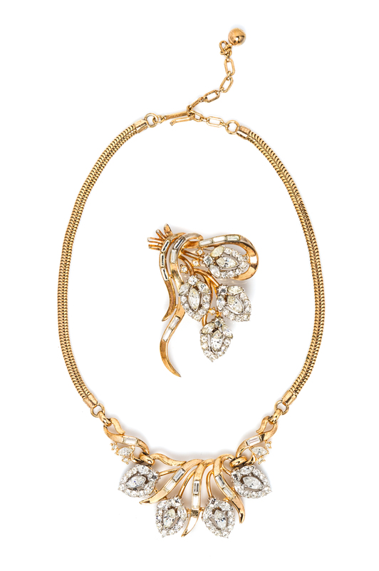 comprised of necklace and matching brooch. Each stamped: Trifari.
