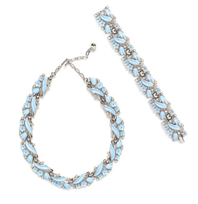 A Trifari Pastel Blue Enamel and Rhinestone Floral Demi Parure,