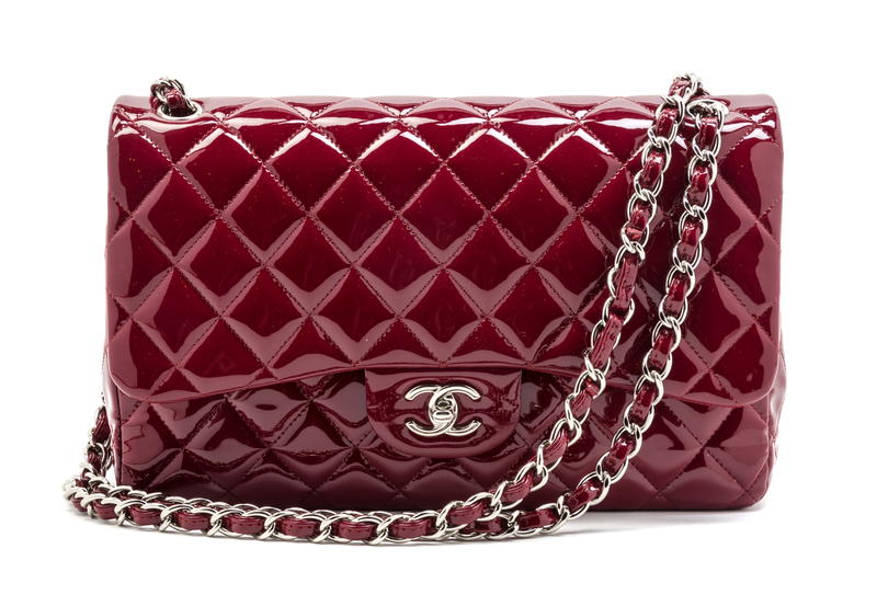 A Chanel Red Patent Leather Jumbo Double Flap Bag,