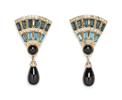 with blue rhinestones and faux onyx dangles. Stamped: Valentino.