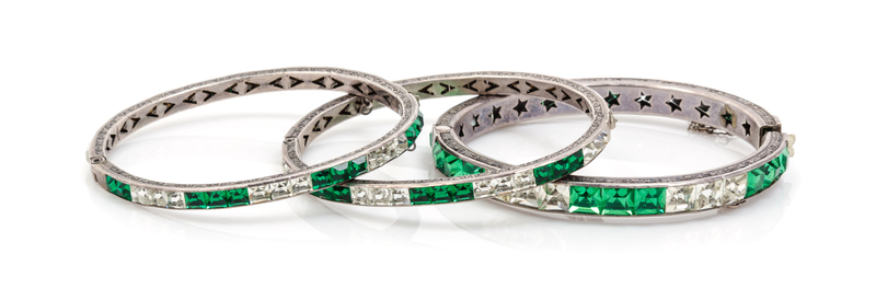 in emerald and clear crystals. Each stamped: Sterling.