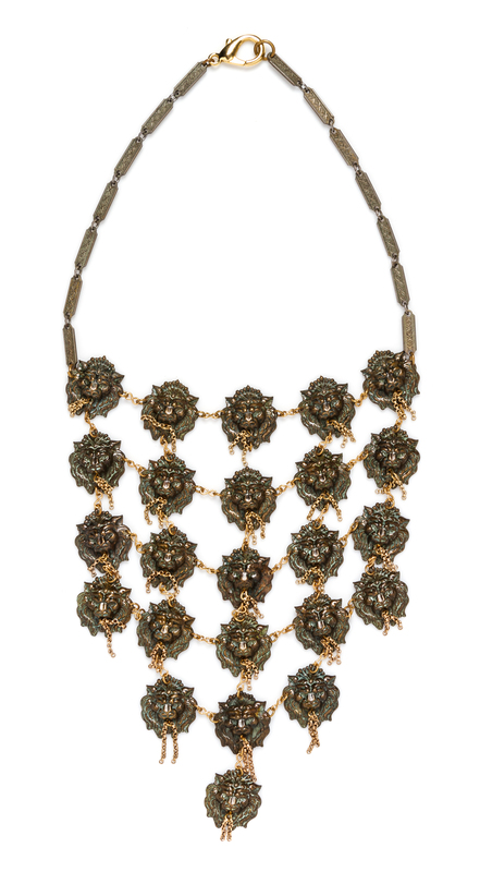 A Coppertone Chain Link Lion Head Bib Necklace.