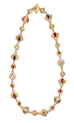 A Goldtone Multicolor Rhinestone Bumblebee Necklace.
