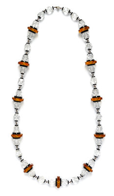 An Amber, Crystal and Black Faceted Bead Necklace.