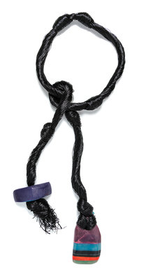 A Black Multistrand Knotted Rope Lariat Necklace,