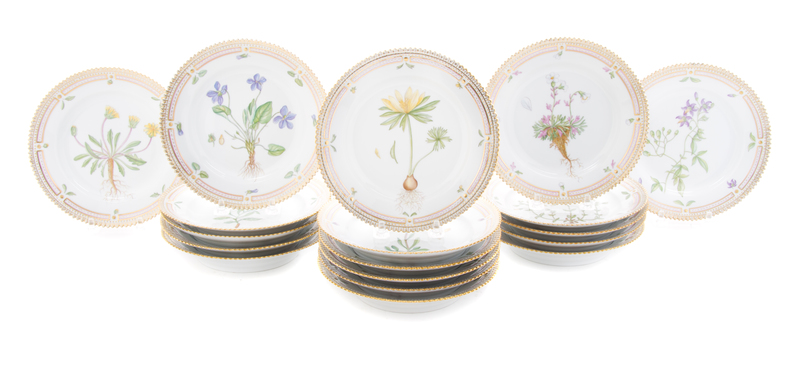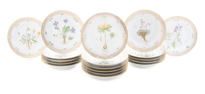 Eighteen Royal Copenhagen Flora Danica Bread Plates
