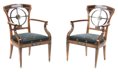 A Pair of Russian Satinwood, Ash and Rosewood Armchairs