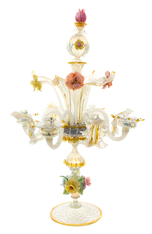 of baluster form with S-scroll arms and decorative floral and leaf elements.